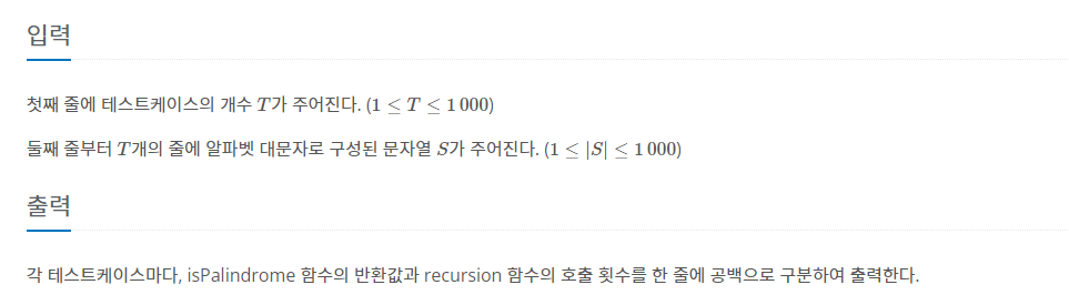 이 문제는 사실 브론즈2 밖에 안되는 굉장히 쉬운 문제다. 당장 재귀 코드도 다주기 때문에 그대로 풀면 된다.